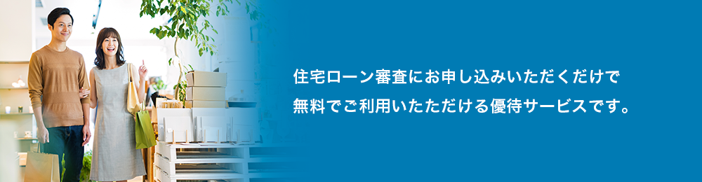 住宅ローン審査にお申し込みいただくだけで無料でご利用いたただける優待サービスです。